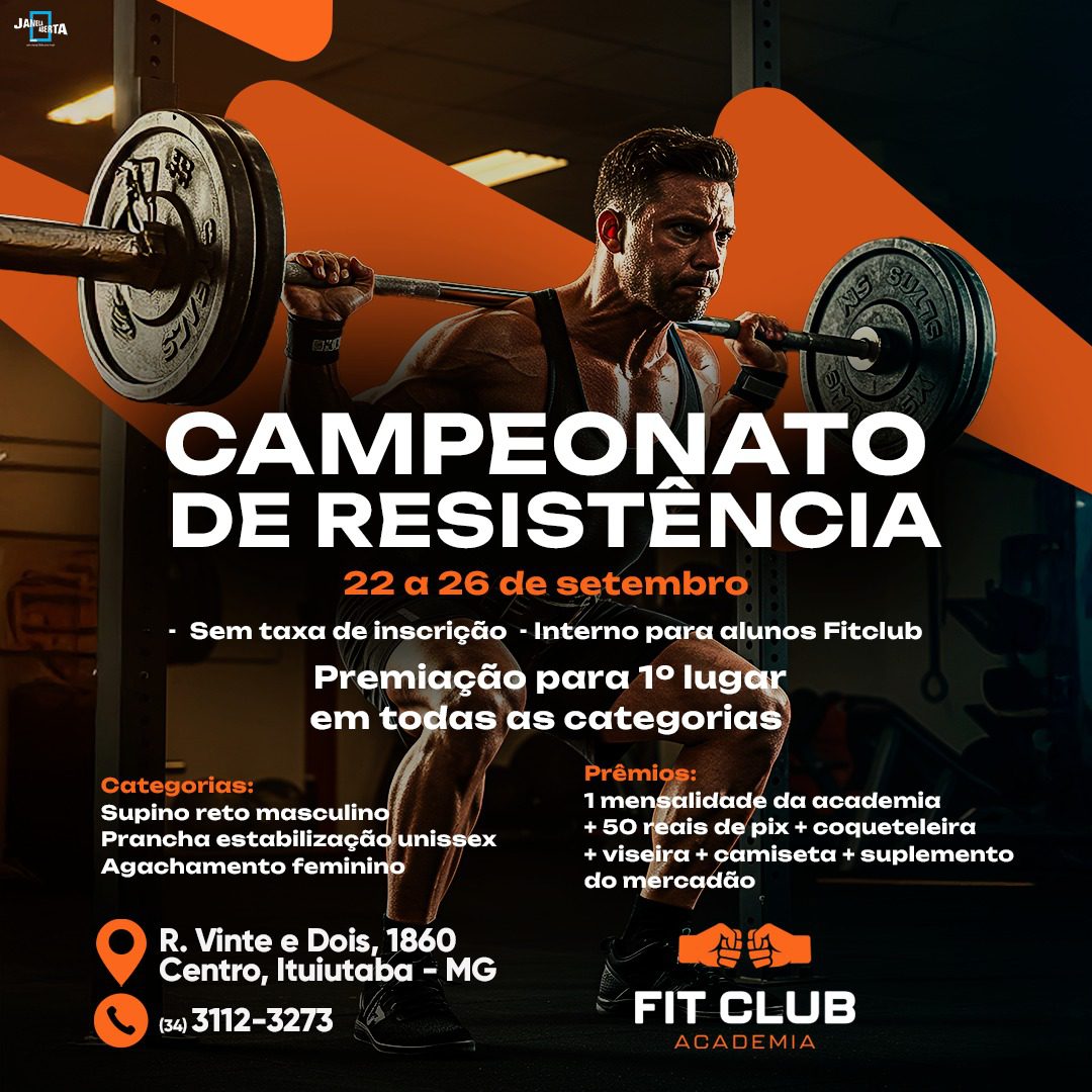 O Campeonato de Resistência, promovido pela Academia Fit Club, reforça a proposta da instituição de incentivar a prática esportiva e estimular hábitos saudáveis entre os alunos. A iniciativa busca ainda fomentar a socialização e a disciplina dos participantes.