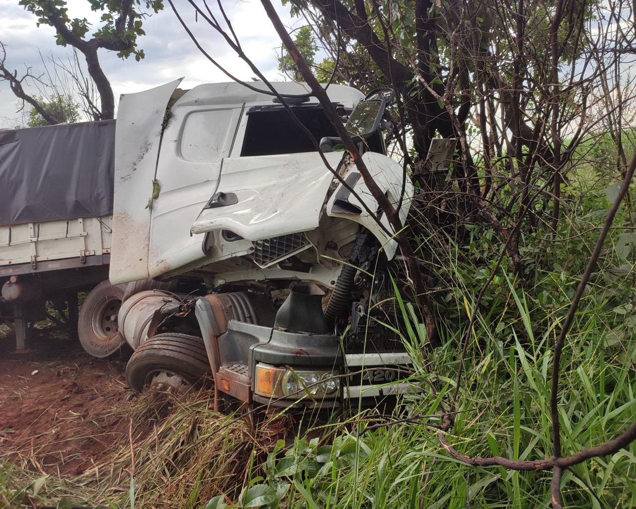 De acordo com informações preliminares da PMRV, a colisão entre os veículos de carga foi quase frontal, com um forte impacto lateral que acabou lançando um dos caminhões para fora da pista.