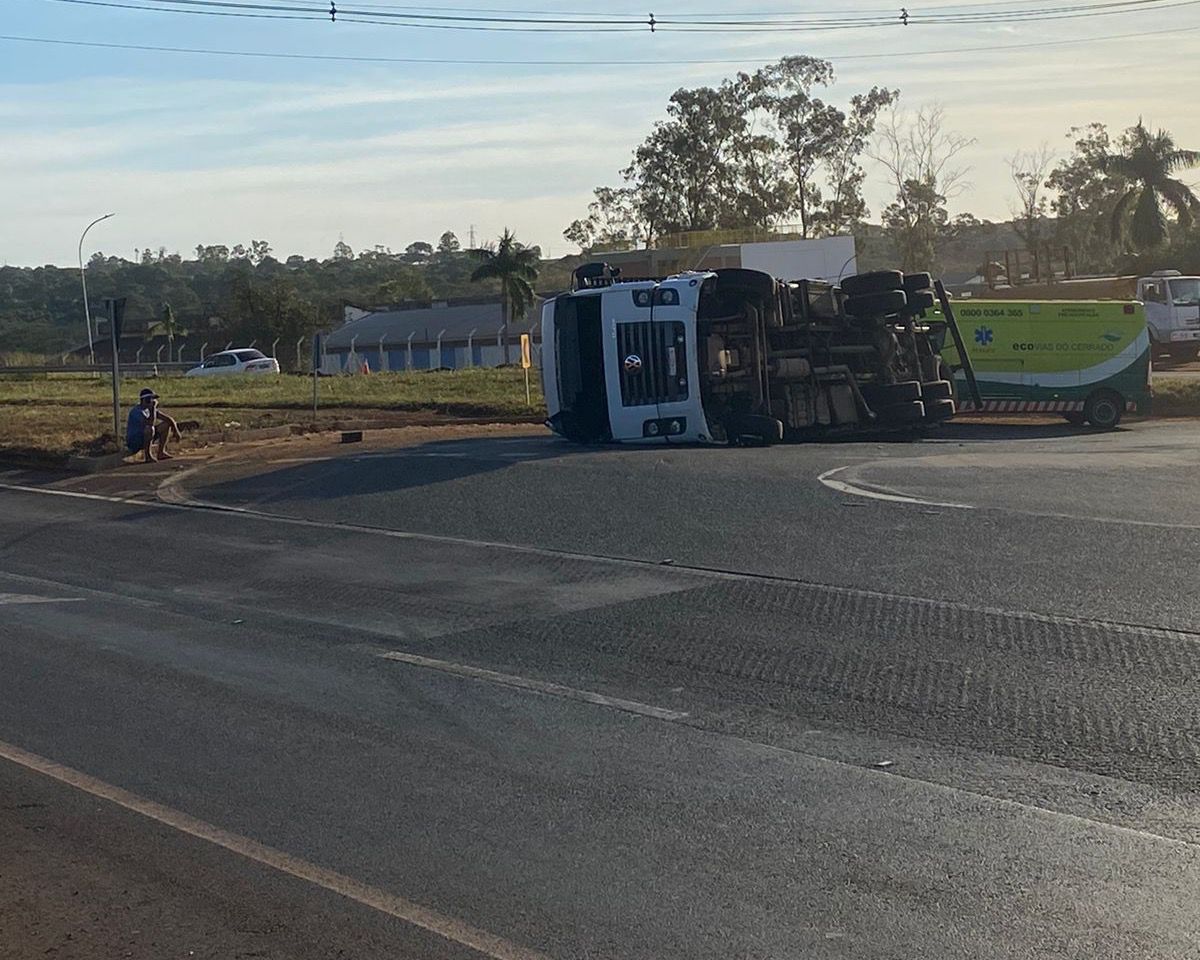 Caminhão tomba em retorno da BR-365 em Ituiutaba; motorista sofre ferimentos leves