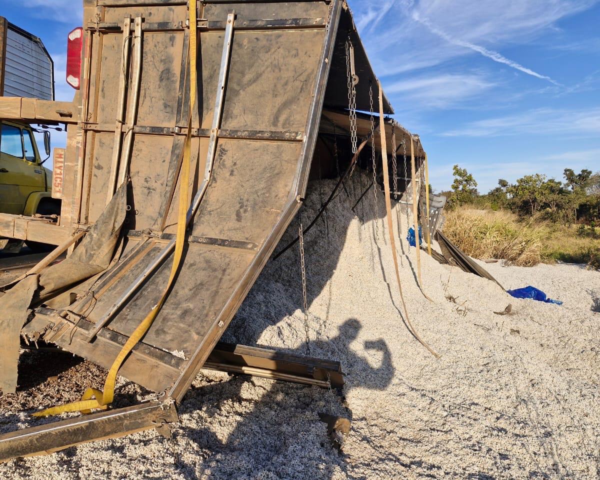 Na tarde desta quinta-feira, 17 de julho, uma carreta carregada com fardos de algodão tombou sozinha na BR-365, entre as cidades de Uberlândia e Nova Ponte, no Triângulo Mineiro. O acidente aconteceu nas proximidades da base da concessionária EPR Triângulo, responsável pela administração do trecho.
