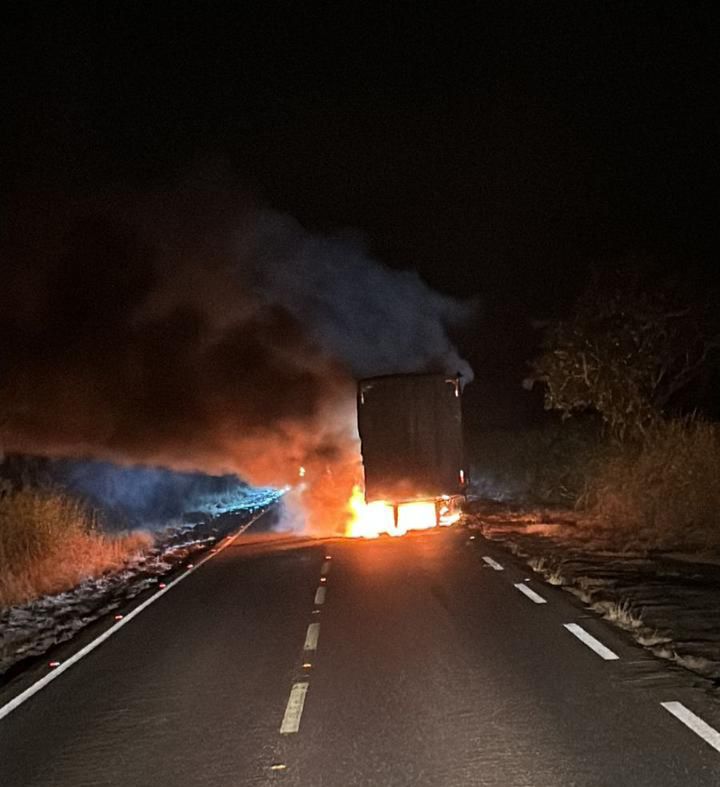 Motorista havia parado veículo após perceber incêndio na carga; caminhão bateu na traseira de semirreboque incendiado durante a madrugada