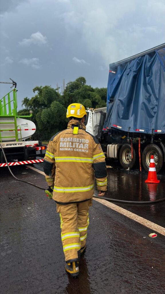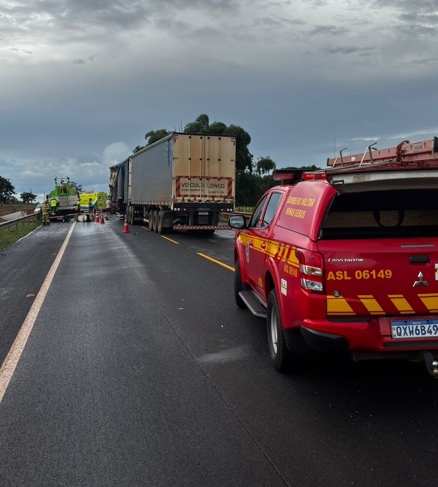 De acordo com o Corpo de Bombeiros Militar de Minas Gerais, o chamado foi registrado por volta das 11h40 e atendido pelo Segundo Pelotão sediado em Ituiutaba (MG). No local, foi constatada uma colisão entre dois veículos de carga.