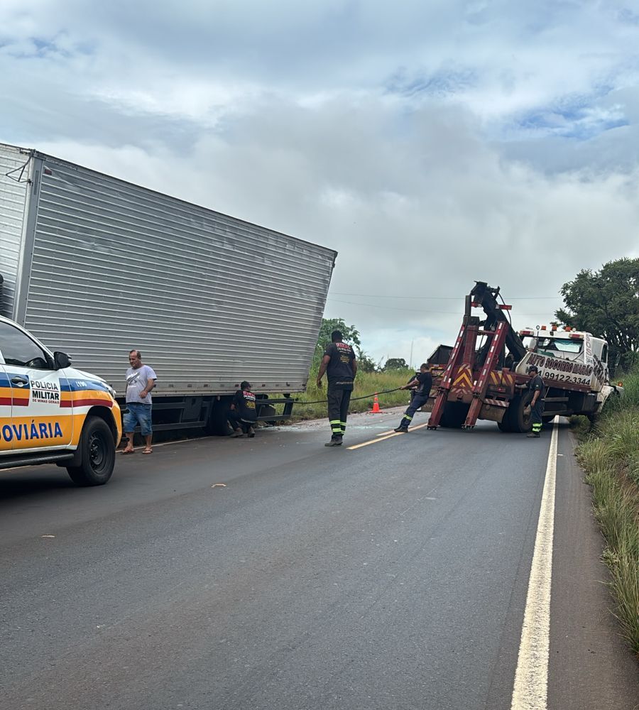 Um engavetamento envolvendo três caminhões e uma motocicleta foi registrado na tarde desta terça-feira, 7 de abril, na rodovia MGC-497, em Uberlândia (MG). O acidente ocorreu por volta das 17h50, na altura do km 8, e deixou uma pessoa com ferimentos leves.