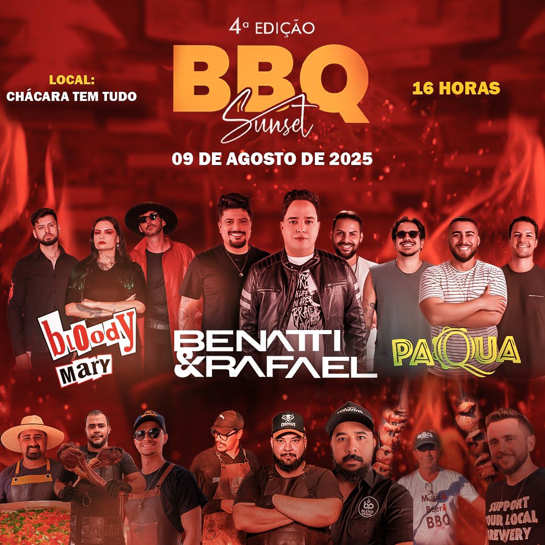 Pensado para quem valoriza boa música, gastronomia de qualidade e bebidas à vontade, o BBQ Sunset 2025 promete mais uma edição memorável. O evento é promovido pela Tem Tudo Eventos, sob comando dos emp´resários Zaider Queiroz e Marco Aurélio Queiroz, nomes consolidados no cenário local.