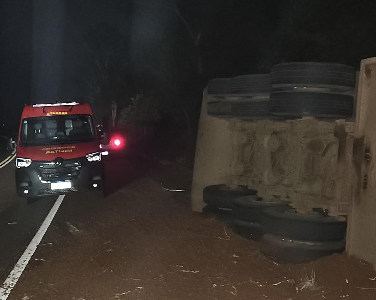 A Polícia Militar Rodoviária Estadual esteve presente, controlando o trânsito e prestando apoio durante o atendimento. As causas do acidente ainda são desconhecidas. A perícia foi acionada e realizou os trabalhos no local para investigar o que pode ter provocado o tombamento.