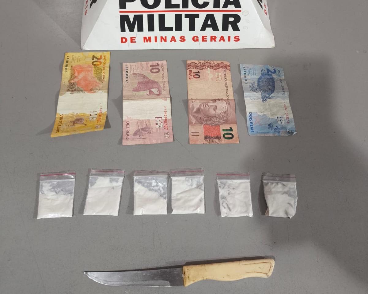 Ainda de acordo com a Polícia Militar, devido à agressividade do suspeito, foi necessária a contenção e o uso de algemas. Durante buscas no quarto do homem, os militares localizaram e apreenderam seis papelotes de substância semelhante à cocaína além de R$ 42 em notas fracionadas. O autor confessou às autoridades que a droga era destinada à comercialização.