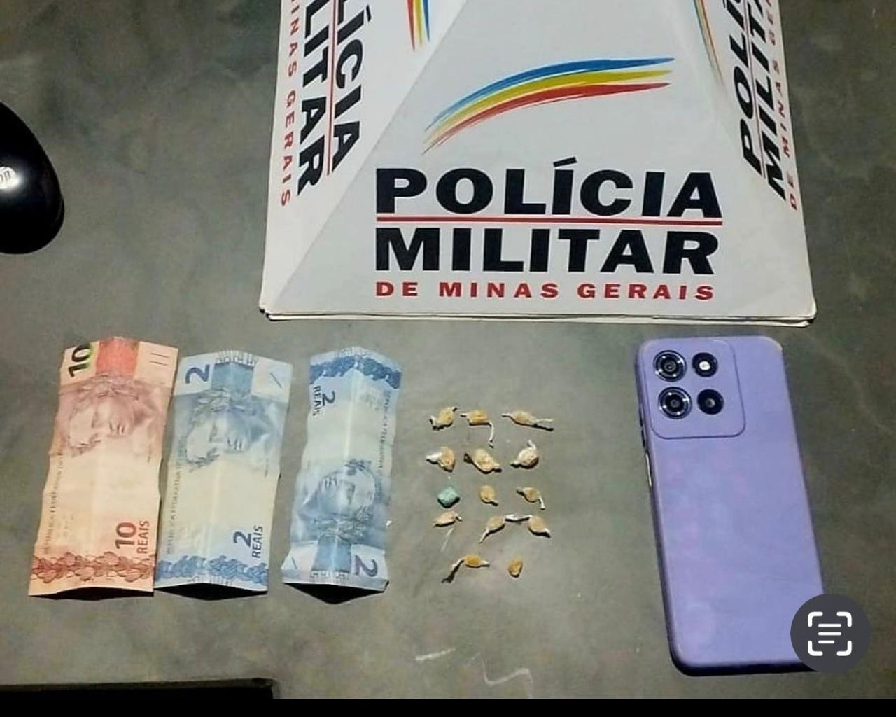 Durante a busca pessoal, foram localizadas 14 pedras de substância com características semelhantes ao crack, prontas para a comercialização, escondidas nas meias do suspeito. Também foram apreendidos R$ 14,00 em dinheiro trocado e um aparelho celular.