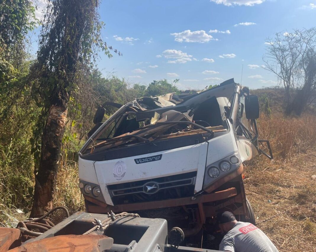 Ainda de acordo com a PMRvMG, o micro-ônibus Marcopolo/Volare V8L MO, de cor branca e placas de Iturama, ficou com avarias generalizadas. Para o destombamento do veículo, foi necessário interditar a rodovia nos dois sentidos.