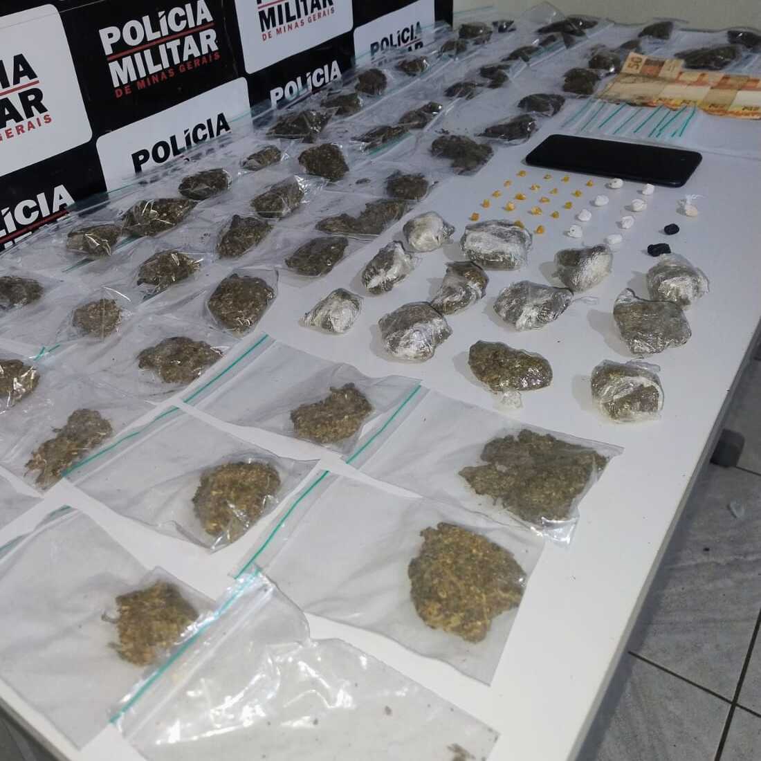Durante as diligências, os militares localizaram 63 porções de substância análoga à maconha e 31 pedras de substância análoga ao crack, já fracionadas para venda. Além dos entorpecentes, foram apreendidos R$ 160,00 em dinheiro, embalagens plásticas do tipo zip lock e um aparelho celular.