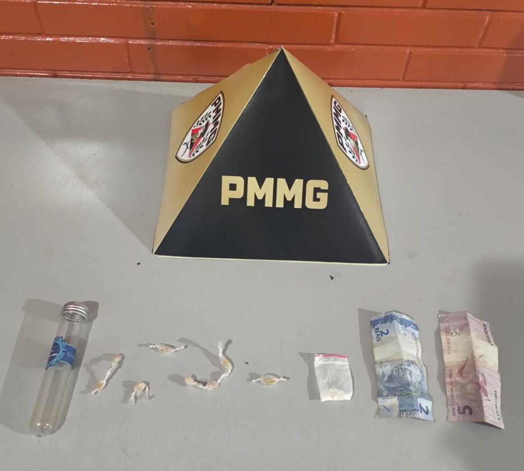 Foram recolhidos R$ 7 em cédulas, oito pedras de substância com características semelhantes ao crack e um papelote de substância análoga à cocaína.