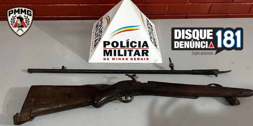 Durante as buscas, os policiais localizaram uma espingarda tipo polvoreira, sem registro, escondida em uma despensa nos fundos da residência. O morador, um homem de 63 anos, não apresentou qualquer documentação que comprovasse autorização para manter a arma.