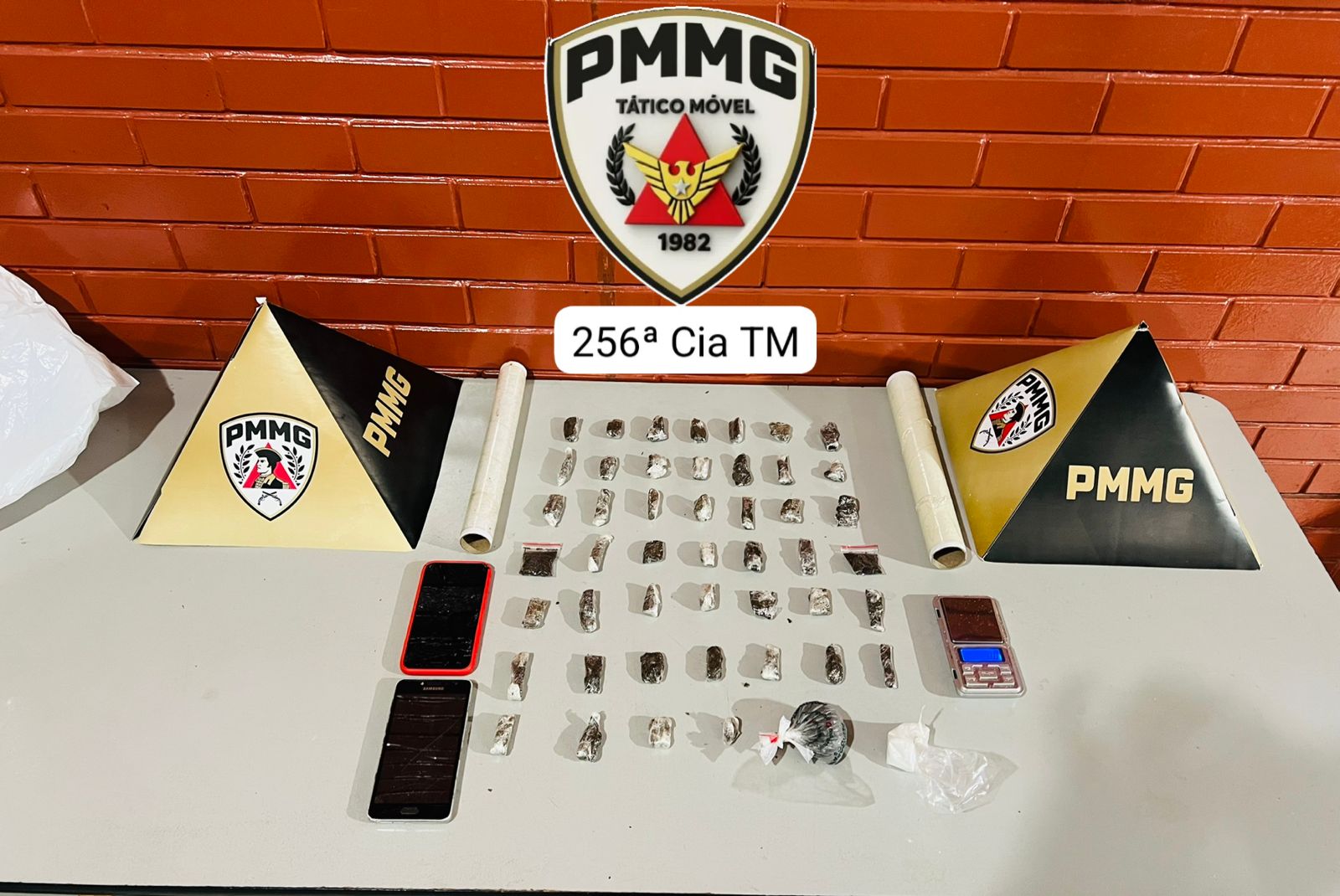 Durante as buscas no interior do imóvel, os militares localizaram diversas porções de entorpecentes e materiais normalmente utilizados para o fracionamento e a venda de drogas. No local, também foi constatado o uso de substância entorpecente, inclusive na presença de uma criança.