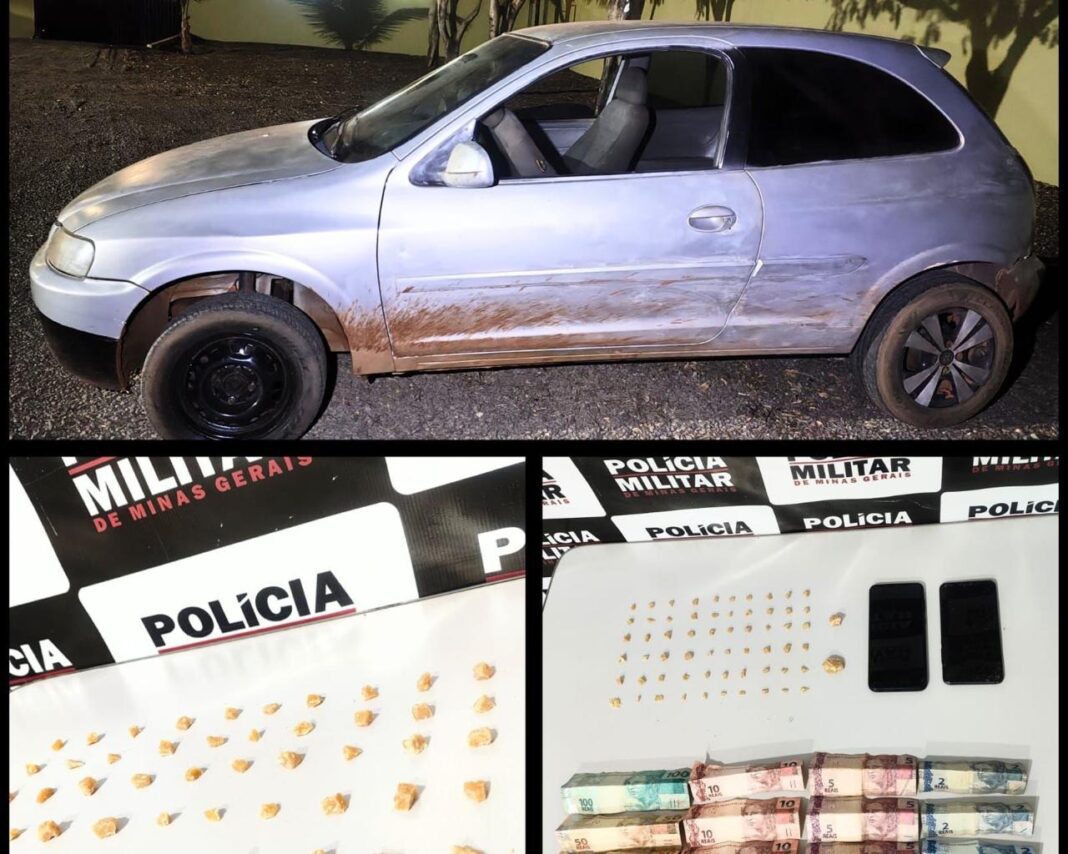 De acordo com a corporação, durante a ação, os policiais encontraram 62 pedras de substância análoga a crack, além de R$ 315,00 em dinheiro, dois aparelhos celulares, um veículo GM Celta e embalagens utilizadas para o preparo da droga.