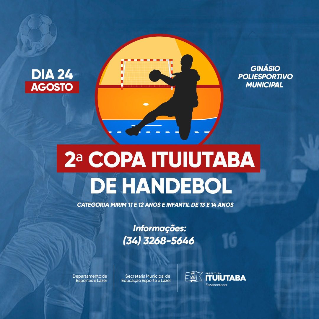 A Prefeitura de Ituiutaba, por meio da Secretaria de Educação, Esporte e Lazer, realiza no próximo domingo, 24 de agosto, a 2ª Copa Ituiutaba de Handebol, no Ginásio Poliesportivo Municipal. O torneio reunirá jovens atletas nas categorias Mirim (11 e 12 anos) e Infantil (13 e 14 anos).