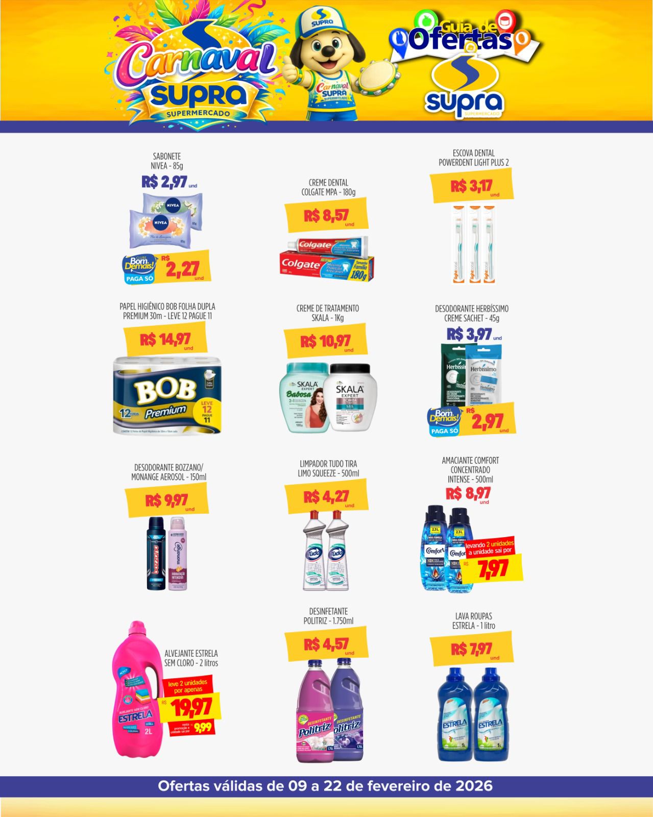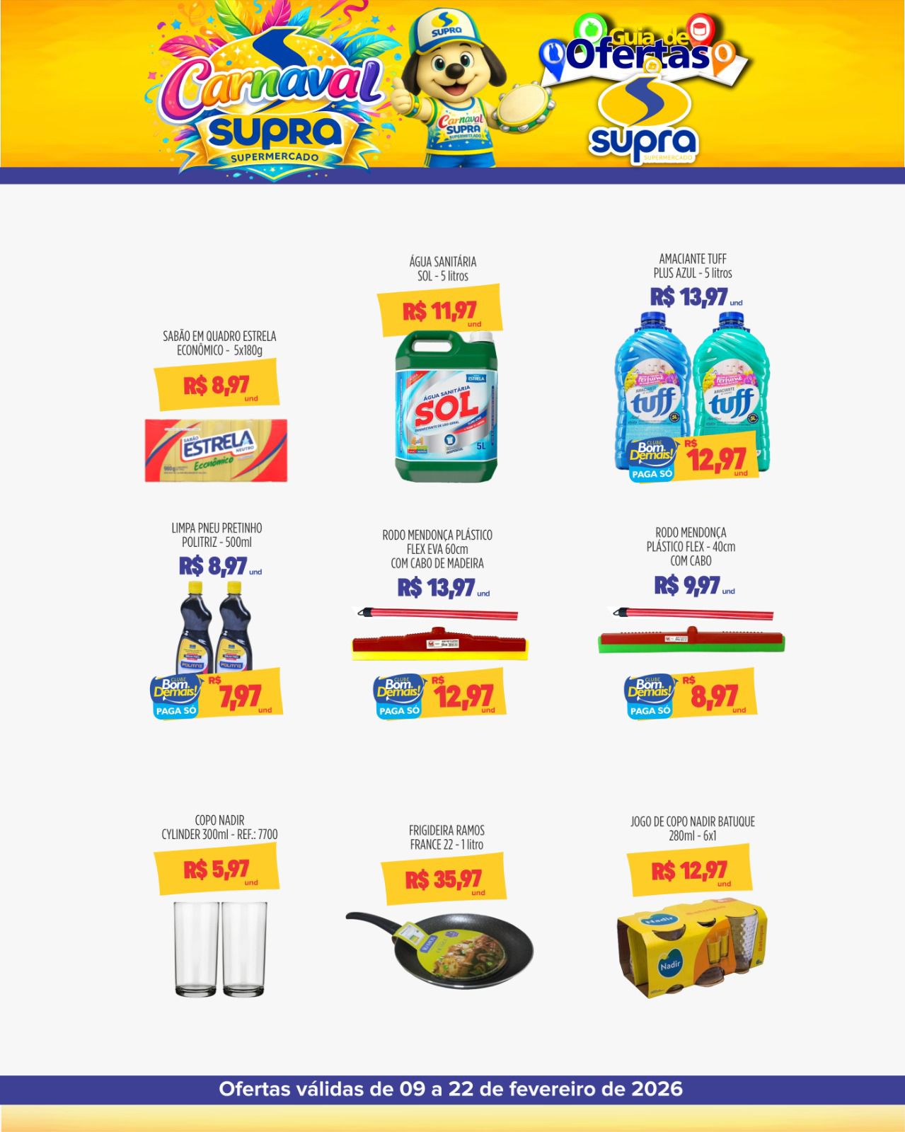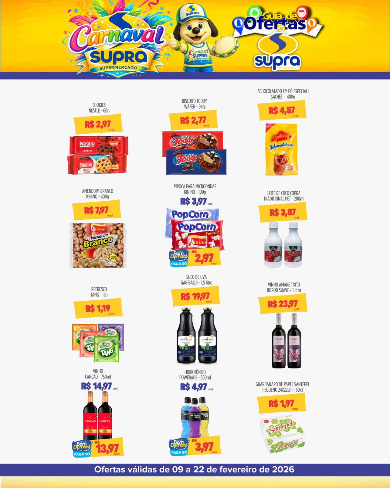 O Carnaval Supra segue de 09 a 22 de fevereiro, com uma série de ofertas distribuídas por todos os setores do supermercado